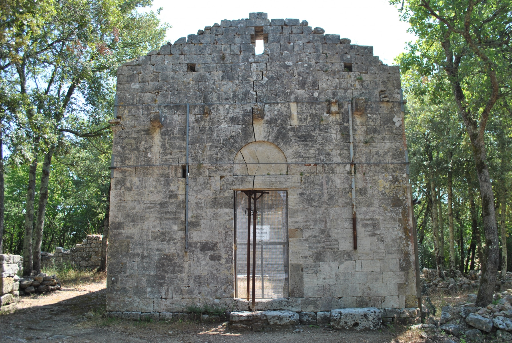 E quindi qualche numero: quarantuno fabbricati riemersi, in un’area archeologica di circa tre ettari. Gli edifici, di solito a pianta rettangolare non sono allineati, non seguono una griglia urbanistica ma, come è consuetudine nel Medioevo, rispettano l’andamento topografico del terreno e la presenza di rocce sporgenti, in questo caso calcaree. Piuttosto tipici i collegamenti tra i diversi fabbricati, muri di vario spessore che servivano come strutture difensive interne alla cinta muraria. Anche la chiesa di Santi Giovanni e Frediano – l’edificio meglio conservato – ha un suo impianto difensivo costituito da muri e fabbricati adiacenti.