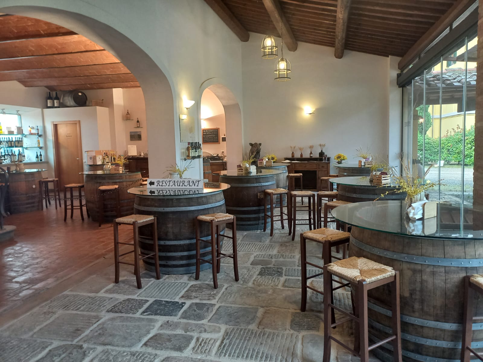 The historic winery has decided to renovate this building, which was originally a barn and was later converted into a vinsanto cellar. Today, it houses this charming restaurant with spacious indoor and outdoor areas.
