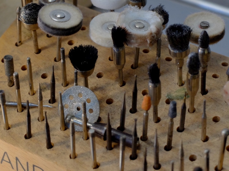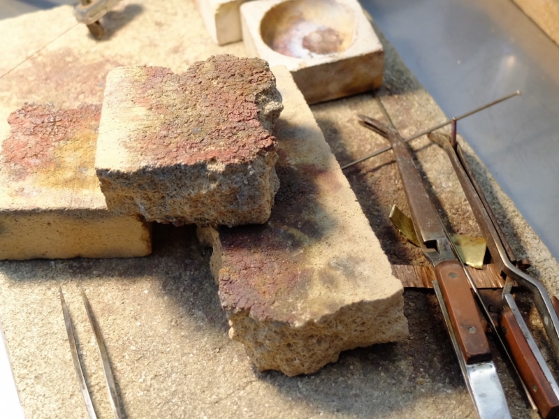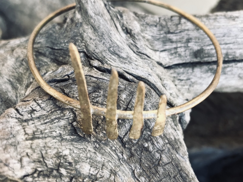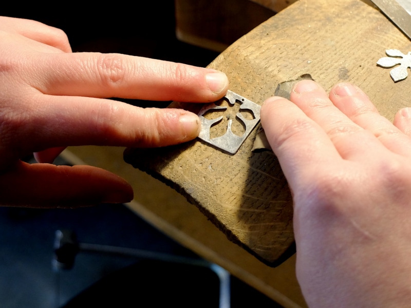 Irina conosce bene questa terra e ne trae costate ispirazione, il suo è un dialogo aperto coi luoghi e con le stagioni. È un processo continuo di osservazione, astrazione delle forme e progettazione: cambiare è sano – dice – altrimenti il cervello si placa e tutto diventa ripetizione. È così che dal suo banco di lavoro, Irina racconta un paesaggio e traduce in metallo ciò che meglio conosce; fonde, trafora, cesella e martella la campagna toscana, la natura che chi vive da queste parti ha sotto gli occhi ogni giorno. È un lavoro di creazione site-specific: ogni monile rispecchia o risuona con la curva di una collina, il gorgoglio di una polla ipotermica, un ramo ritorto; una foglia secca si presta a così tante variazioni sul tema da non essere mai la stessa e un’incastonatura ricorda il fluire di un torrente.