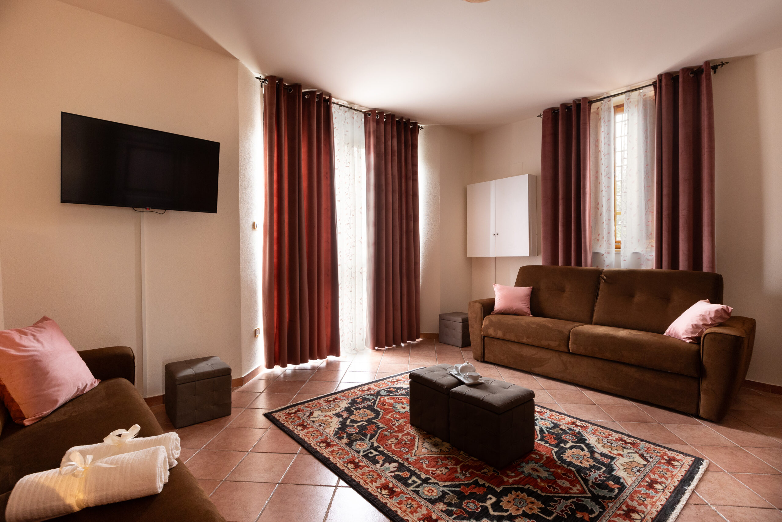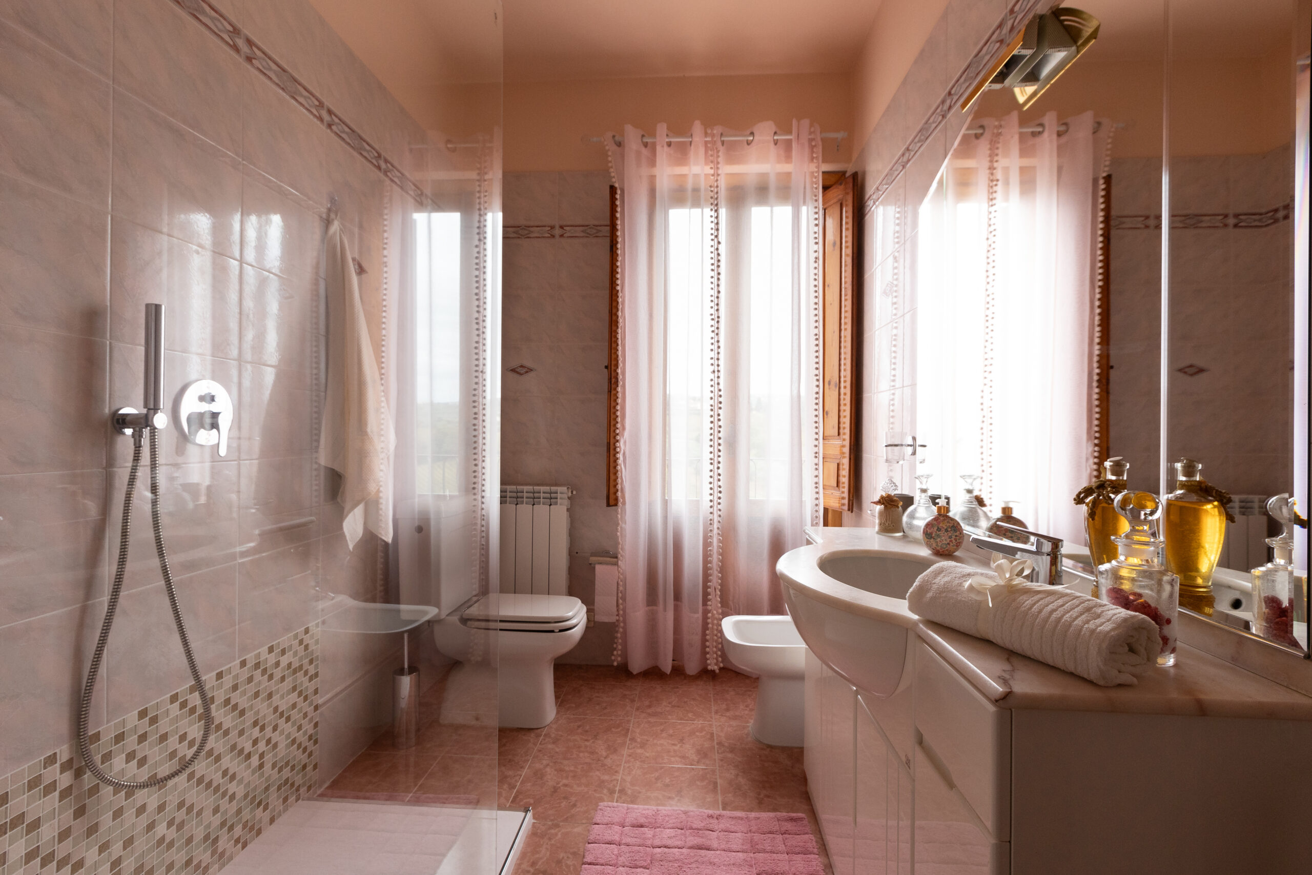 - 3 bagni privati con wc, bidet e doccia