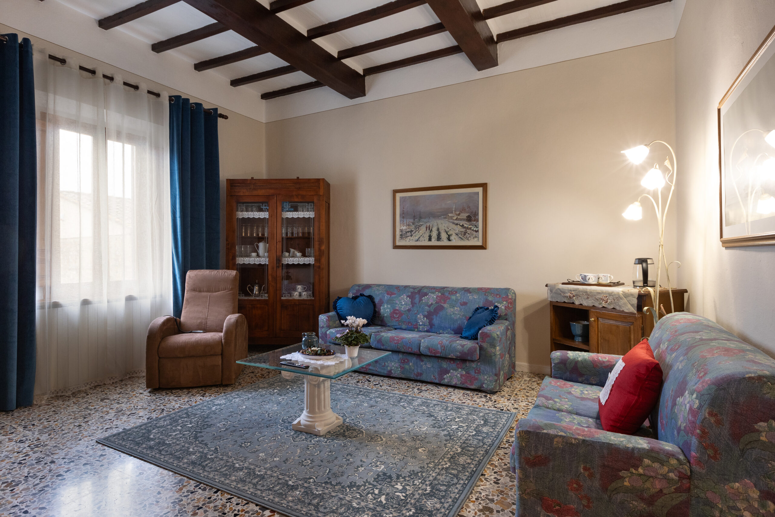 Il piano terra ospita due ampi soggiorni, uno dei quali con accogliente zona salotto e camino, ideali per condividere momenti di relax dopo una giornata di escursioni. Entrambi sono provvisti di divani letto matrimoniali ed è presente un bagno accessibile a persone con disabilità.