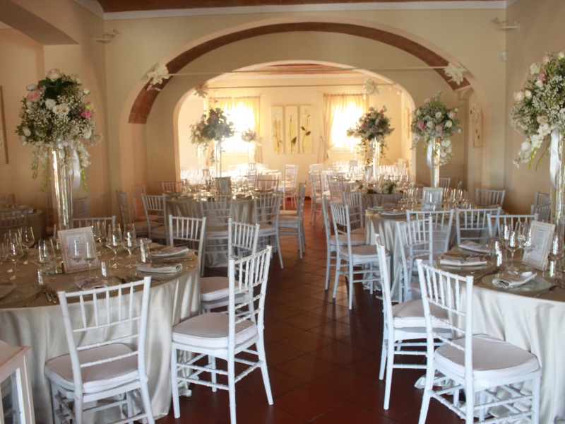 Il ristorante della tenuta – con la cucina professionale e lo staff interno – accoglie fino a un massimo di 70 persone, così come i giardini adiacenti offrono una comoda soluzione di allestimento per circa 50/60 persone. Qualora il numero di invitati sia superiore alle 100/120 persone e nel caso in cui gli sposi lo richiedano, è possibile affidarsi a un catering esterno.
